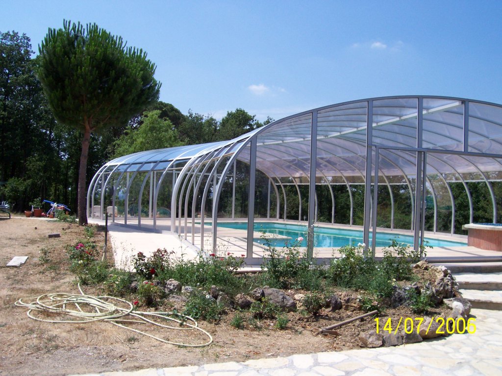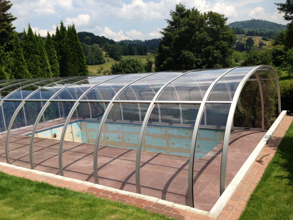 • festehende Schwimmhalle mit beidseitig hochschiebbaren Dachflächen