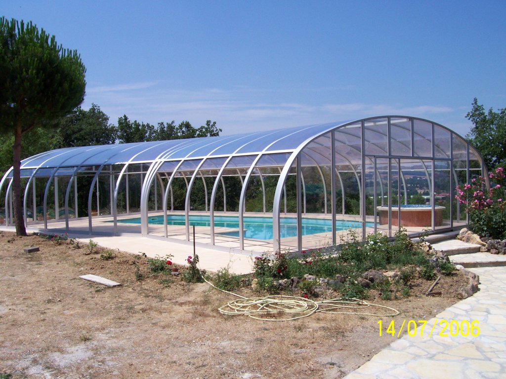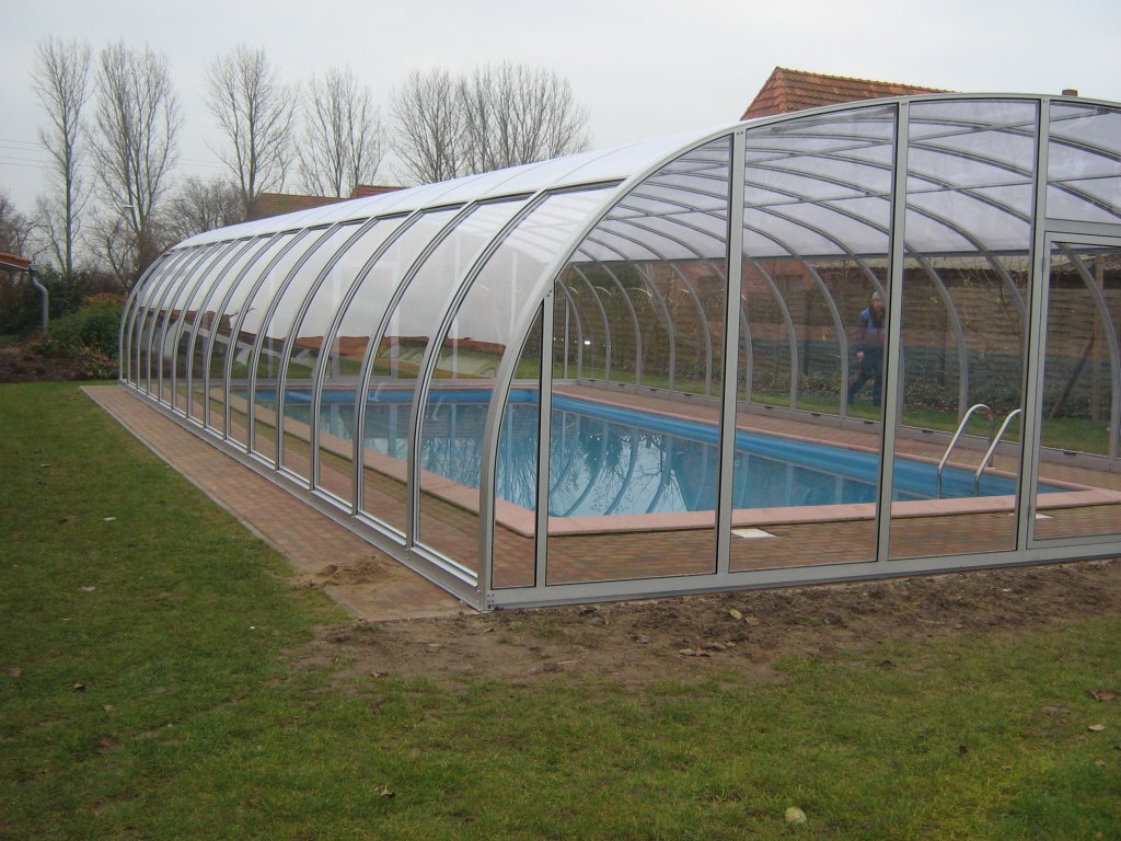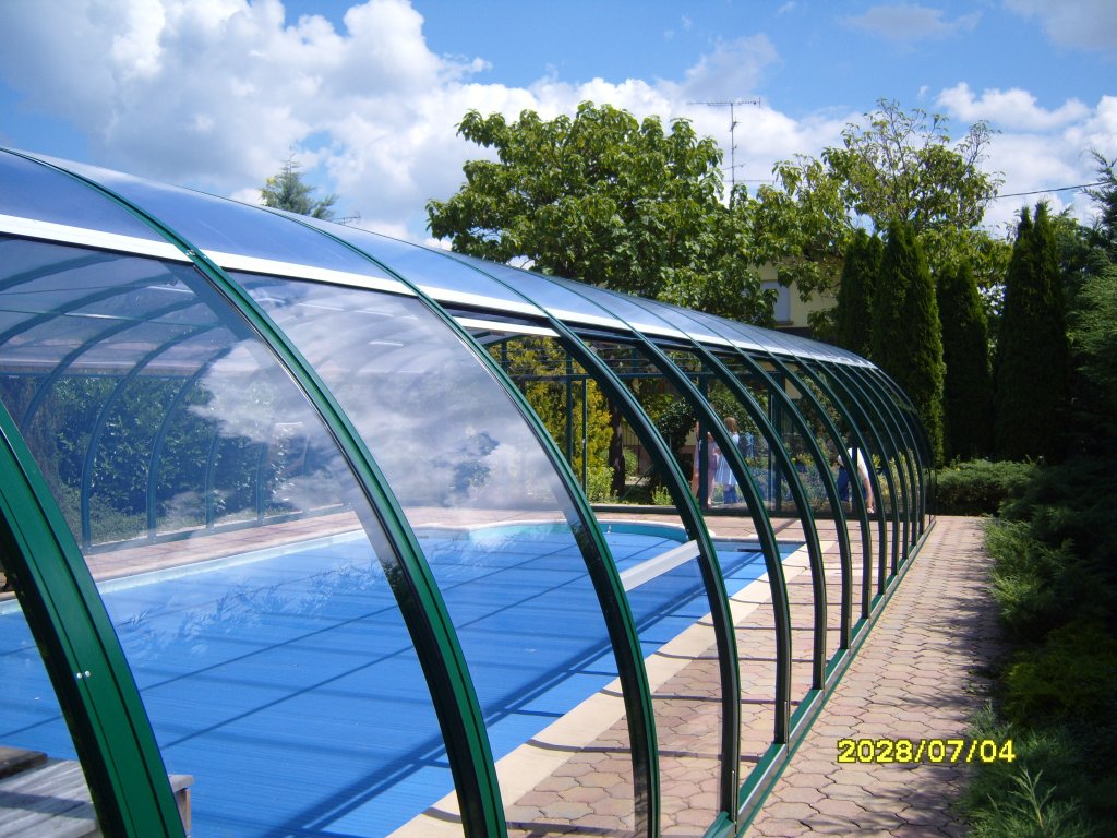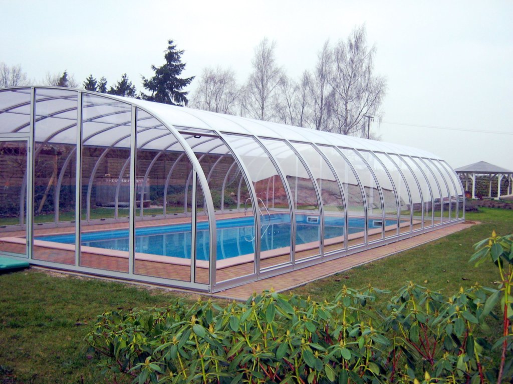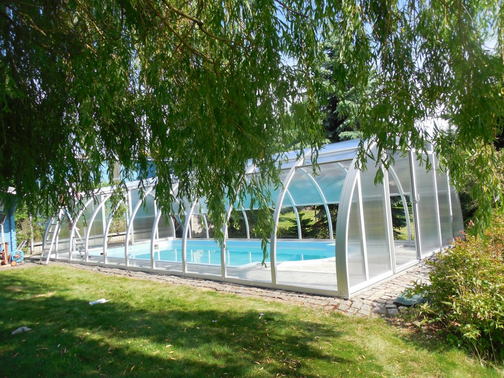 • festehende Schwimmhalle mit beidseitig hochschiebbaren Dachflächen